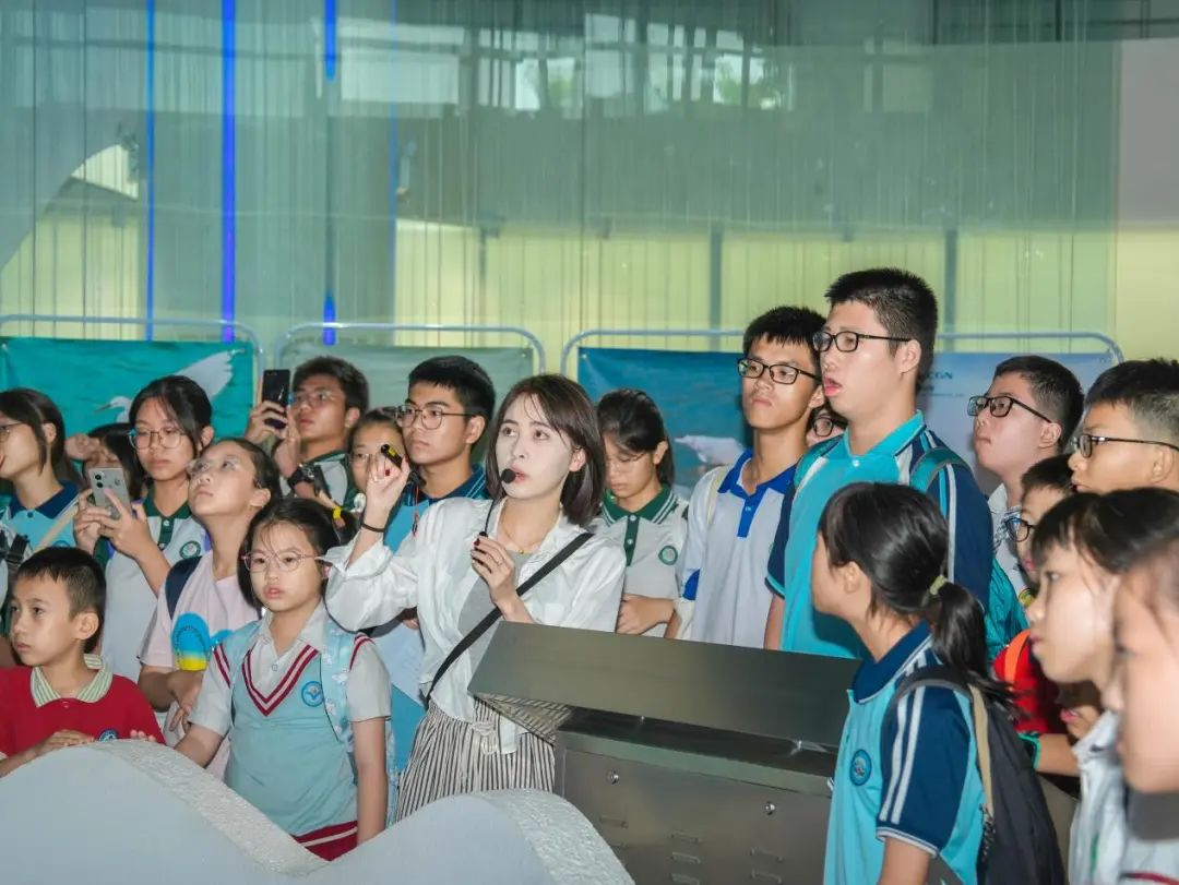 隨后,大家來到臺山核電基地附近的中華白海豚科普館。白海豚被譽為“海上大熊貓”,館內(nèi)的白海豚標(biāo)本和有趣的講解,讓大家深入了解了這些可愛生物的生活習(xí)性,以及它們與核電基地和諧共生的關(guān)系。
