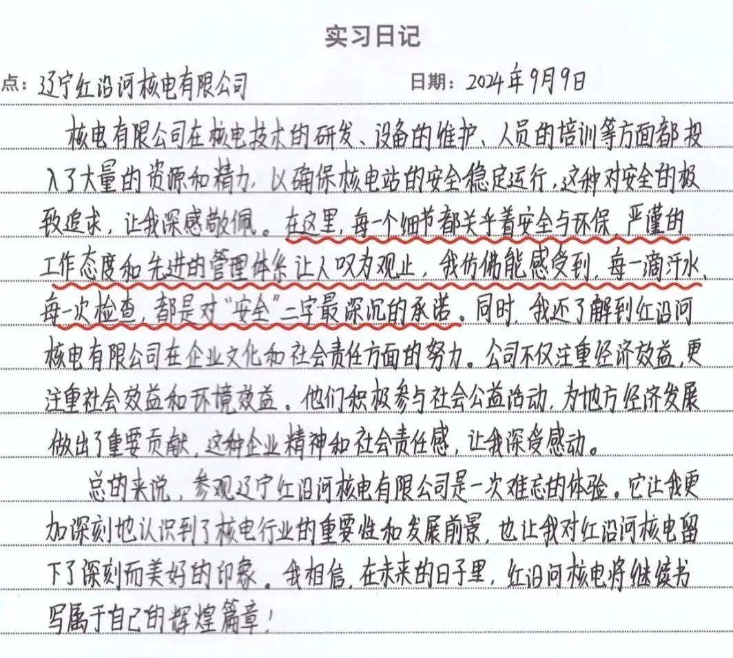9月9日,大連理工大學(xué)船舶學(xué)院110余名學(xué)生來到紅沿河核電基地,開展為期一天的“同享清潔能源,共建美麗中國”主題研學(xué)活動。學(xué)生們在核電科普大講堂聆聽講座,了解核電發(fā)展歷史和基本原理;在模擬機教室參觀全范圍模擬機,體會核安全文化的嚴(yán)謹(jǐn)性;在花蹊遠(yuǎn)眺核電機組,欣賞渤海灣日落晚霞;在文瀾閣感受讀書文化并寄出明信片;在馬拉松長廊了解全國首個核電馬拉松背后故事,感受核電人精神。隨后,學(xué)生們以日記形式記錄所見所聞,分享研學(xué)感受。