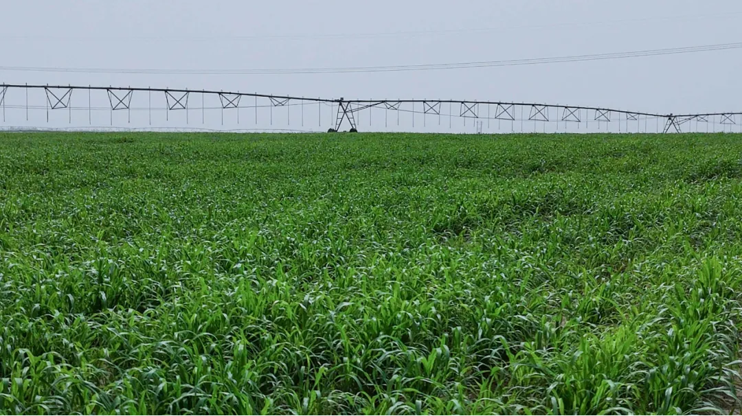 和田洛浦萬畝光伏治沙項目總面積2.2萬畝,其中種植美洲狼尾草(復播紫花苜蓿)4027畝,種植耐旱植物(采用9個種類的植物種植混播)5830畝,防風林(含草方格)187畝,剩余1.2萬畝地的光伏建設和覆綠同步進行中。項目采用國內企業自主研發的“沙膜”技術,在沙地表面20厘米處施加植物纖維黏合劑,使原本離散的沙體能保水、保肥,形成適合作物生長的土壤結構。同時,項目安裝的光伏板不僅能將太陽能轉換為電能,還能讓光伏板下的土壤避免太陽直射,減少水分的蒸發。項目每年可新增苜蓿等干草飼料供應約3000噸,可滿足400頭?;?000只羊的飼草要求,能夠帶動當地稅收和就業,增加農戶和養殖企業收入。