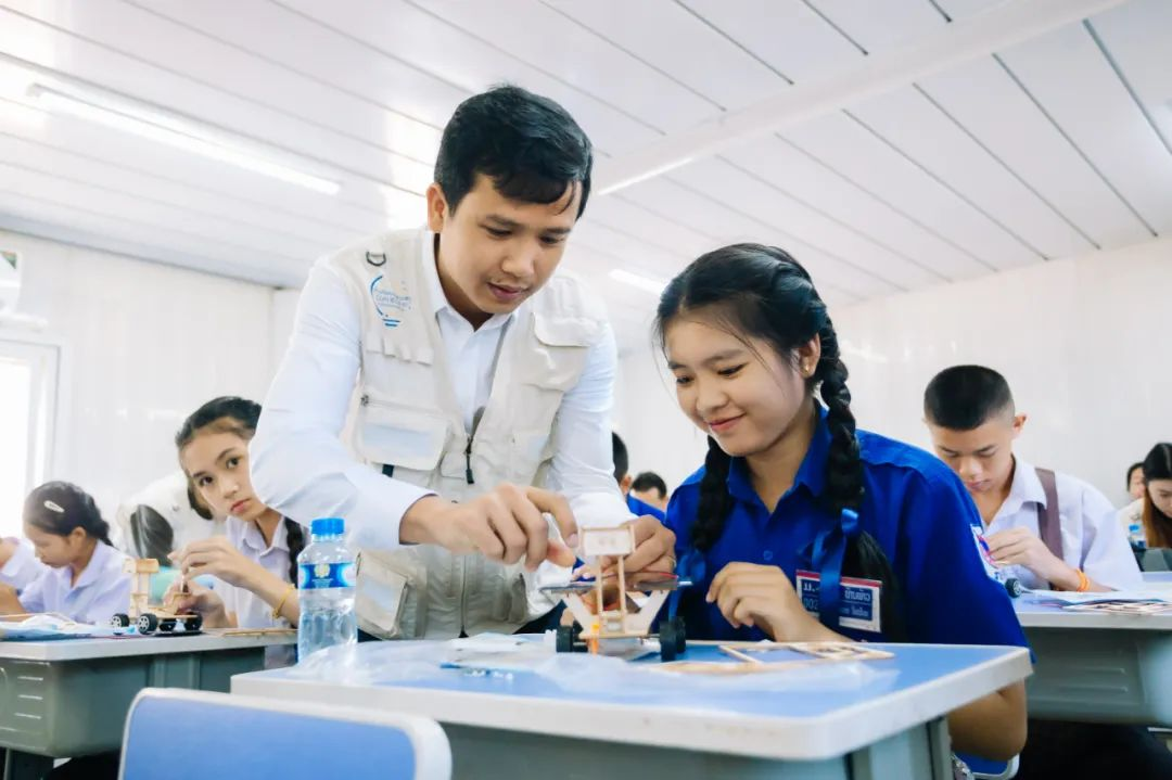 ▲中廣核“螢火計劃”志愿者走進萬象省巴恩縣貧困生培訓學校