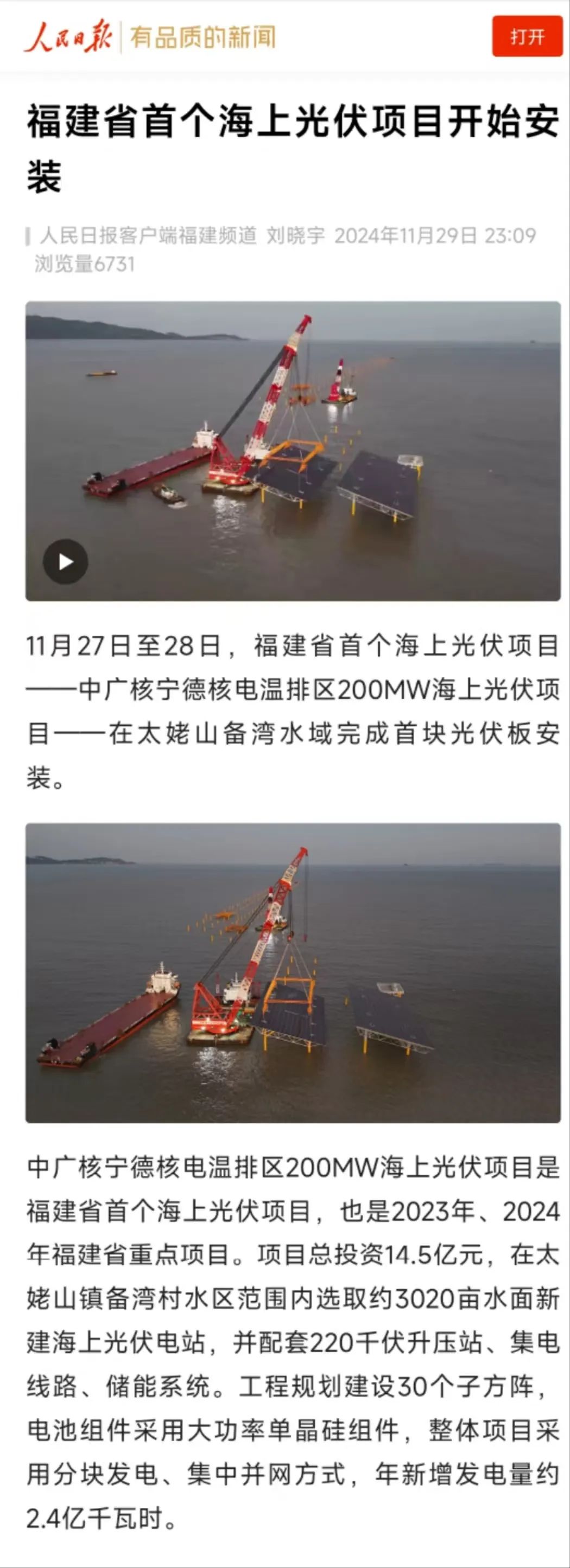 福建省首個(gè)海上光伏項(xiàng)目