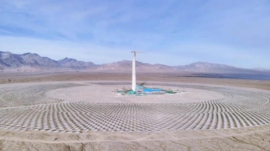 中廣核德令哈100萬千瓦光熱儲一體化項目是國務院國資委戰新產業“百大工程”之一。該項目位于青海省海西州德令哈市光伏(光熱)產業園區,采用光伏與塔式光熱耦合發電的多能互補新型發電技術,儲能配比率高達25%,是國內在建光熱儲能配比率最高的光熱儲多能互補項目。其中,80萬千瓦光伏發電已并網發電;20萬千瓦光熱儲能發電是國內單體規模最大的塔式光熱項目,目前吸熱塔、主廠房主體結構已順利封頂,各項設備安裝工作有序推進。