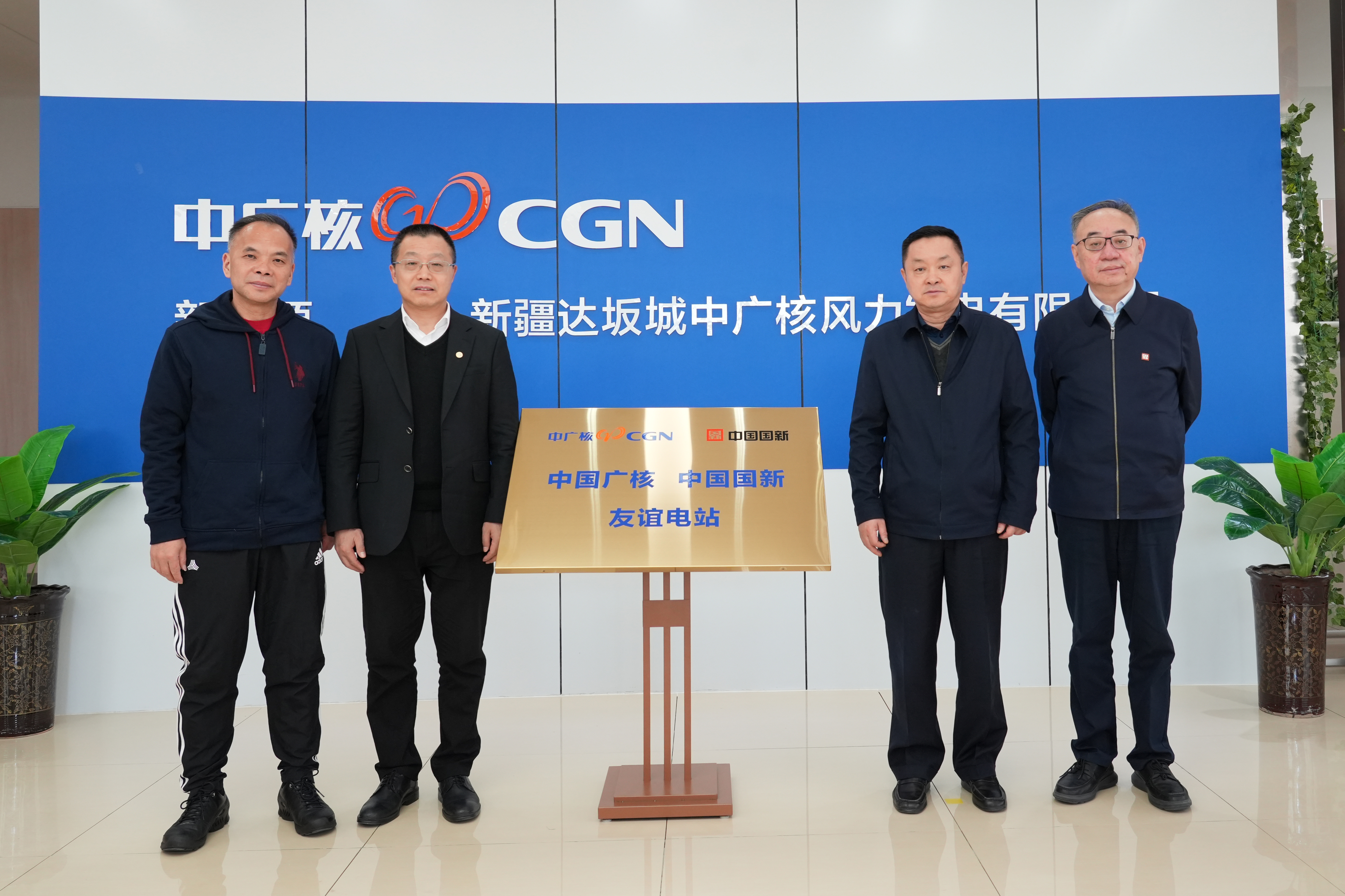 24日下午,集團與中國國新在新疆達坂城風電場舉行“友誼電站”揭牌儀式,受集團公司董事長楊長利委托,高立剛與徐思偉共同為“友誼電站”揭牌。