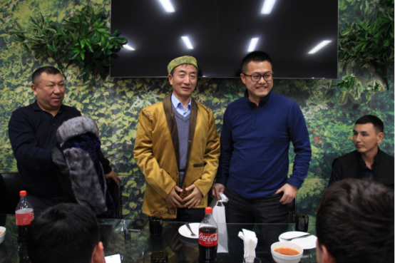 ▲中礦全體員工向郝金龍(左二)贈送“恰巴”